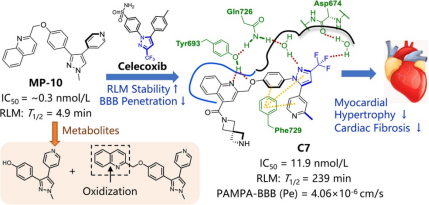 本论文发现了一个PDE10抑制活性高(11.9 nM)、PDEs亚型选择性高(> 840倍)、代谢稳定性好等综合性质优良的先导结构C7,并在异丙肾上腺素(ISO)诱导的小鼠病理性心脏肥大模型中具有显著药效,确证PDE10是心衰的一个重要治疗靶标,同时也为心衰疾病干预提供先导化合物。