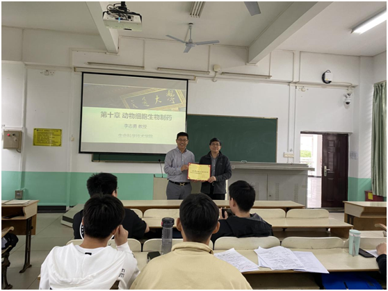 2018级生物技术专业学生讲授《细胞工程》课程。学院副院长韩谦教授代表学院为李志勇教授颁发“绅士漫画