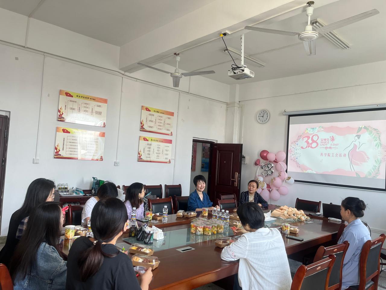 活动最后,学院党总支书记、工会主席胡静为辛勤工作在工作岗位上的女教职工准备了精心制作的蛋糕面包、水果和鲜花,送上最甜蜜的节日礼物和美好祝福,让女教职工们感受到了浓浓的节日氛围。