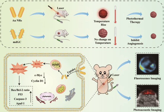 总之,mdGC可以实现高性能荧光/光声双模态成像,并且在不受外部激光的限制下通过线粒体途径增加细胞内ROS的产生进而诱导癌细胞凋亡。