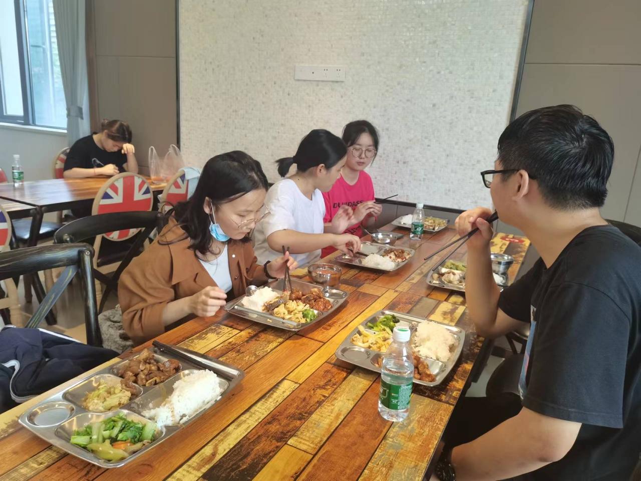 老师们和2022级研究生新生在福邻中心食堂一起共进午餐,共话心声。午餐过程中,罗海彬院长、胡静书记、黄玲副院长和宋彦廷副院长悉心询问了同学们对食堂餐饮的意见以及学习生活情况,认真倾听了同学们关于后勤服务、教育教学、专业就业、疫情防控等方面的建议诉求,耐心回答了同学们关于食堂餐饮、日常管理等各种提问,气氛愉悦而温馨。