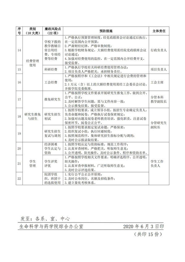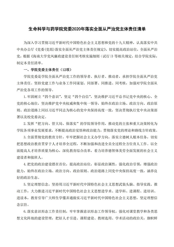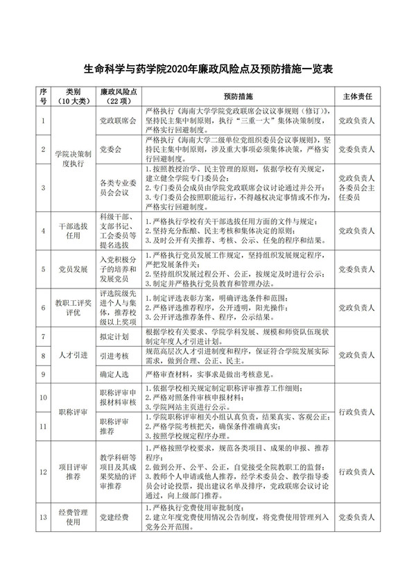 关于印发《生命科学与绅士漫画 党委2020年落实全面从严治党主体责任清单》、《生命科学与绅士漫画 2020年廉政风险点及预防措施一览表》的通知