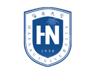 校徽由中英文校名、海水纹、椰树、“HN”外文字、创办年份等要素组合而成,整体造型采用国际著名学府普遍使用的象征权威教育机构的盾牌形状,设计风格简洁大方、严谨高雅、清新自然,具有时代感和国际化特色,易于传播。