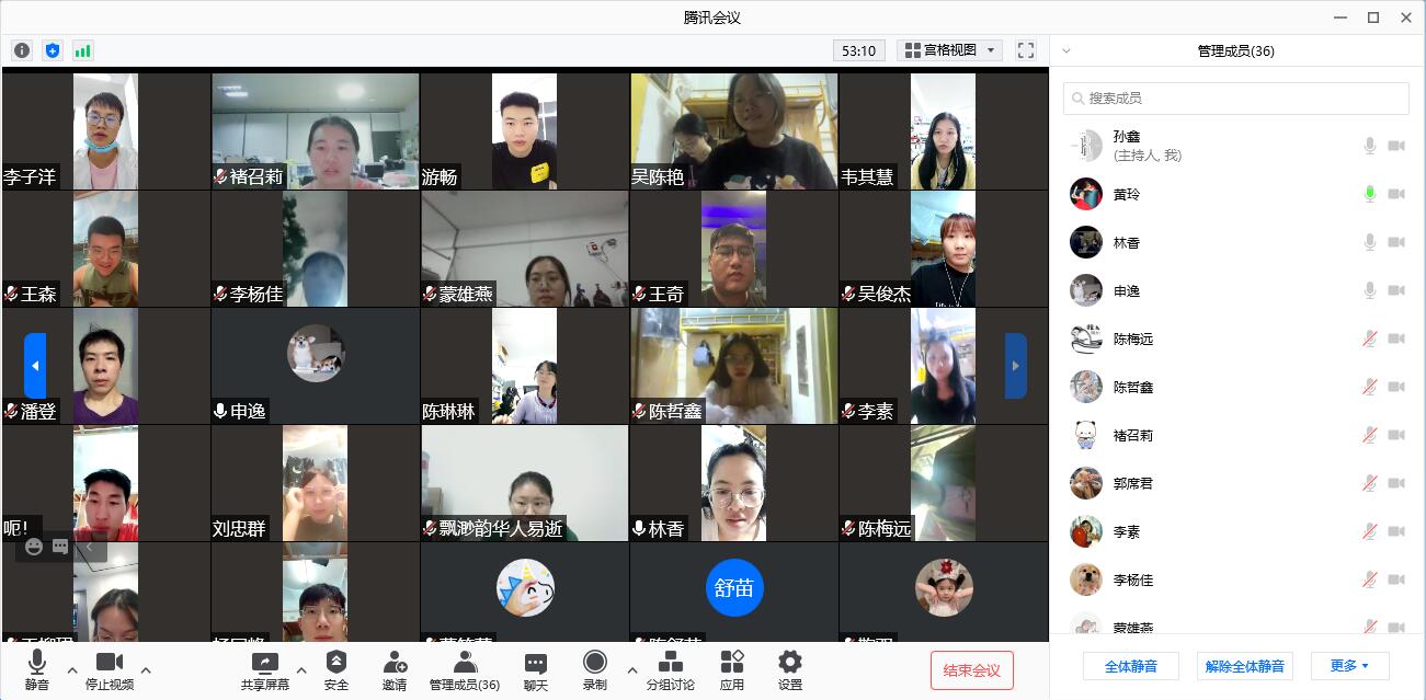 研究生党支部通过腾讯会议在线进行10月主题党日活动,活动由党支部书记黄玲主持,学习内容为《党课开讲啦》第1期《党的光辉历程》,参会人员共46人,包括研究生党支部成员15人(1名党员请假)、入党积极分子7人、2021年绅士漫画