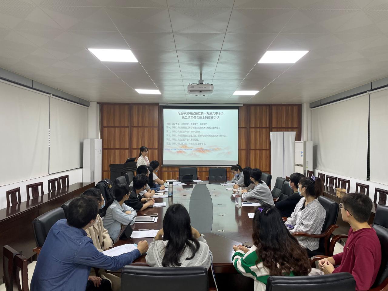 会上,研究生党支部书记黄玲老师带领全体党员学习十九届六中全会重要讲话精神,重点了解会上强调的“十个明确”和“十个坚持”。继续把党史总结学习教育宣传引向深入,更好把握和运用党的百年奋斗历史经验,弘扬伟大建党精神,增加历史自信、增进团结统一、增强斗争精神。