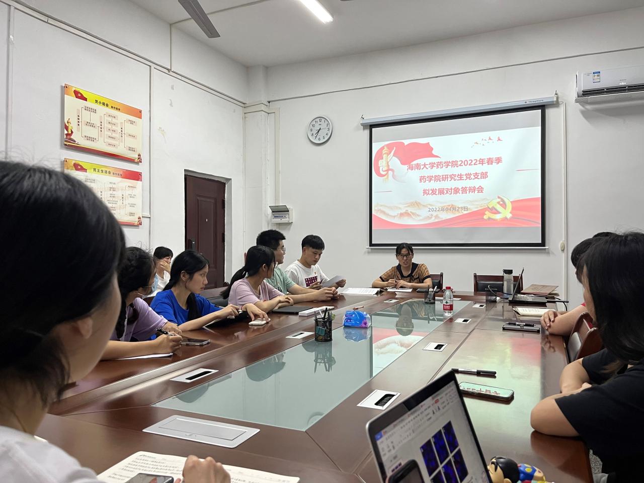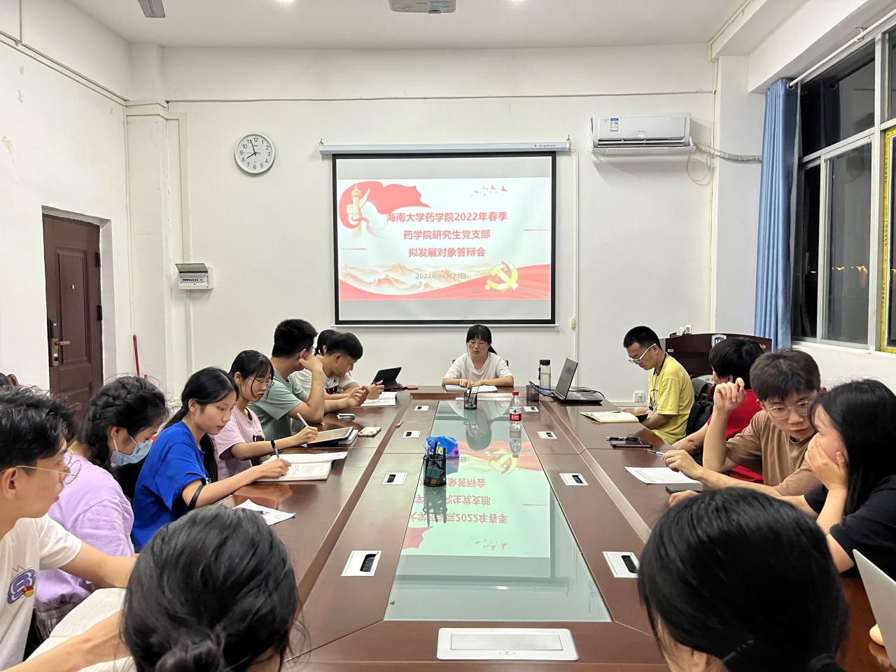 研究生党支部在学院楼608会议室召开党支部确定发展对象会议。会议共有15位党员和4位入党积极分子参加,3位党员因实验请假缺席。会议上党员人数超过应到会有表决权人数的半数以上,符合大会召开条件。会议由支部书记黄玲主持。