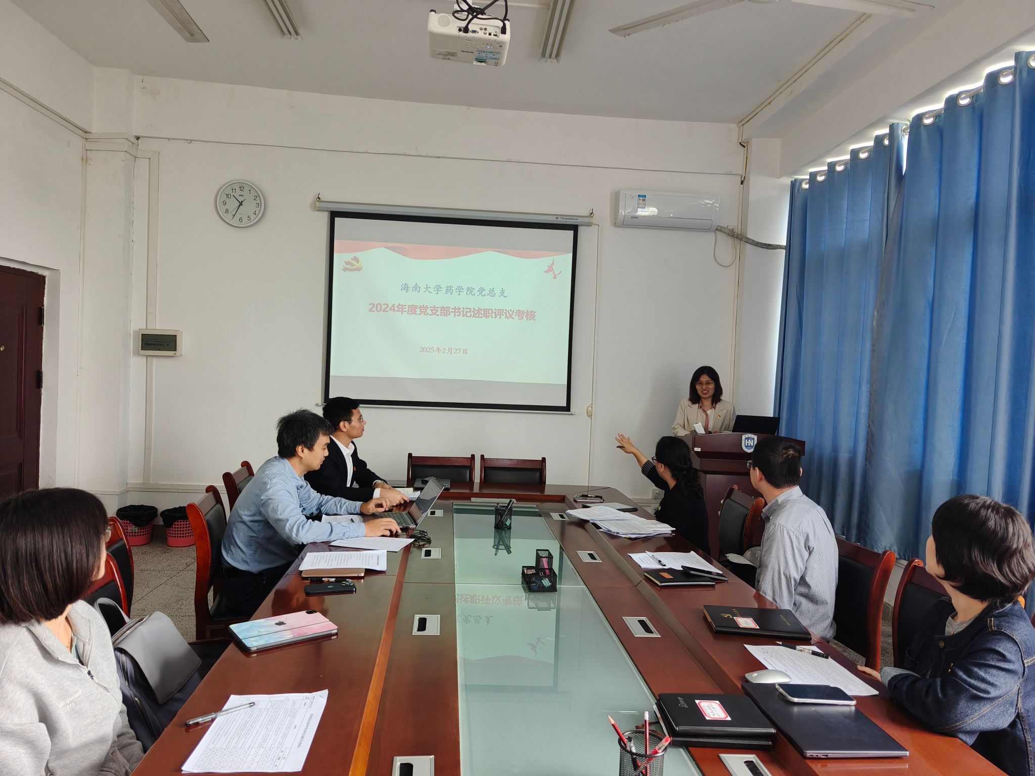 党总支在海甸老农科楼608会议室召开了2024年度党组织书记抓基层党建述职评议会议,对学院三个教工党支部书记工作进行考核。会议由学院党总支书记胡静主持,学院党总支委员、各支部书记以及党员群众教师代表参加了会议。