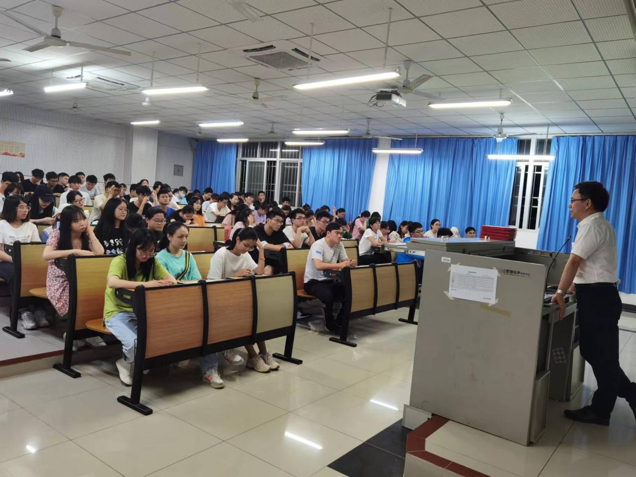 院长罗海彬教授做动员报告。罗院长分别通过药学青年担当使命、学院近一年取得的突破性显著性成绩成果、备考过程中的重点注意事项等层面进行升学动员,鼓励同学们尽早确定升学目标,高效备考、持之以恒。随后详细介绍了学院研究生专业设置情况以及学院“升学助航计划” 七个一工程具体帮升学举措,引导学生积极报考本院,坚持不懈,精准上岸。