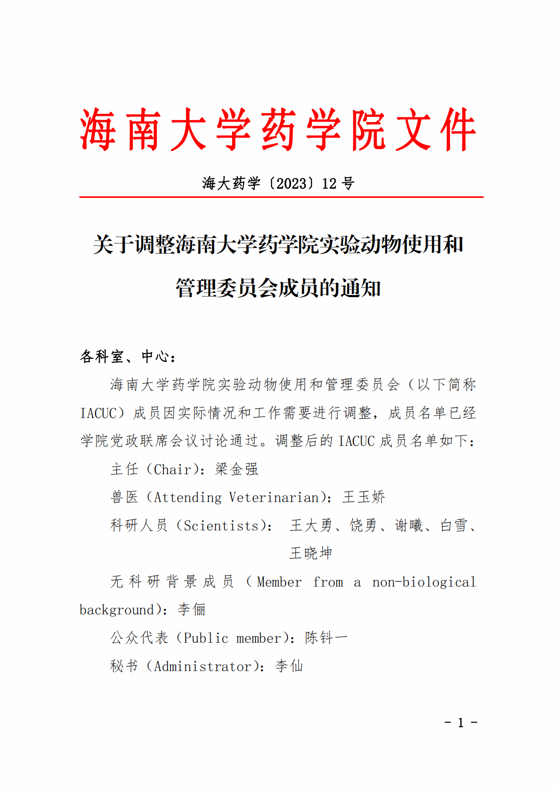 海大药学〔2023〕12号:关于调整绅士漫画 实验室动物使用和管理委员会成员的通知.pdf
